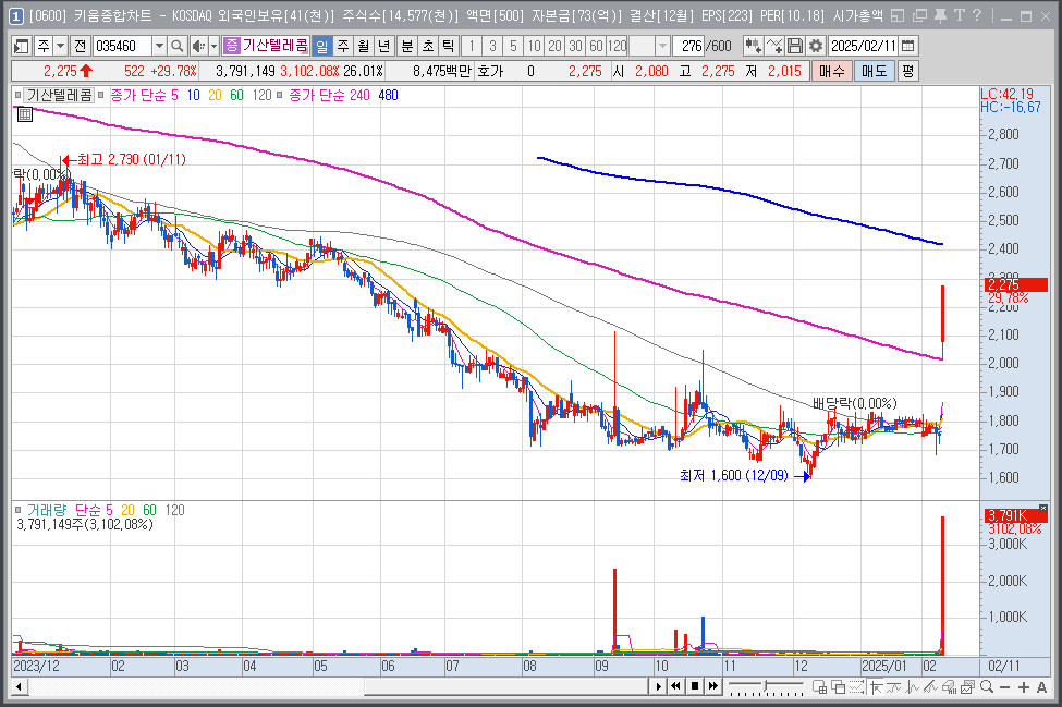 기산텔레콤의 주가는 2월 11일에 도심항공모빌리티(UAM) 분야의 성장 가능성 덕분에 급등했습니다.