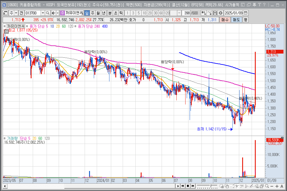 주가는 전일 대비 상한가를 기록하며 29.97% 급등했으며 이는 투자자들 사이에서 큰 관심을 끌었으며, 주가 급등의 원인으로 여러 가지 요인이 제시되고 있어 재료 분석을 해보도록 하겠습니다.