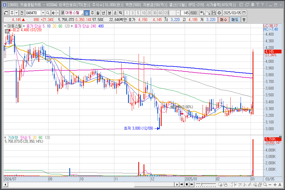 이러한 요소들은 투자자들의 긍정적인 기대를 이끌어냈으며, 그 결과 대동스틸의 주가는 큰 폭으로 상승했습니다.
