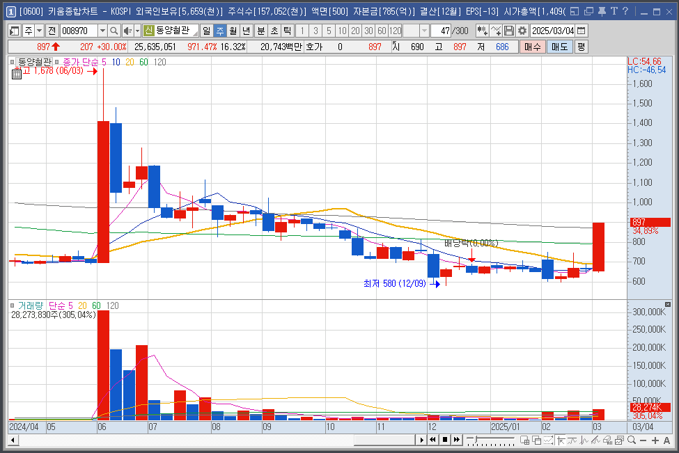 2025년 3월 5일, 동양철관의 주가는 상한가를 기록하며 시장의 주목을 받았다.