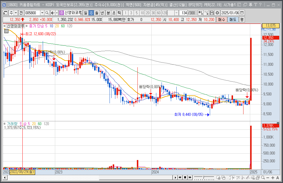 신영와코루(005800) 기업부터 확인하고 1월 8일 상한가를 달리며 주가가 급등이유에