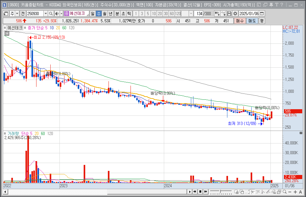2025년 1월 10일, 예선테크의 주가는 전일 대비 29.93% 상승하며 상한가를 기록하며 최근 몇 개월간 큰 변동이 없던 주가가 갑작스럽게 급등한 배경에는 다음과 같은 주요 요인들이 작용한 것으로 보입니다.