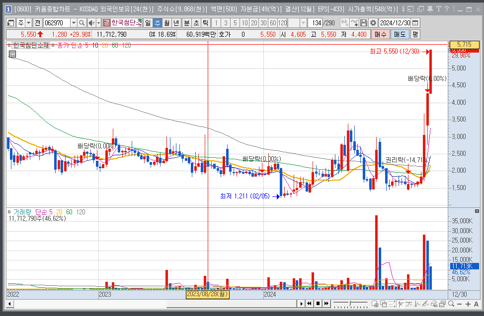 작년 27일 상한가에 이어 한국첨단소재는 상한가를 기록하며 관심을 한몸에 받았습니다.
