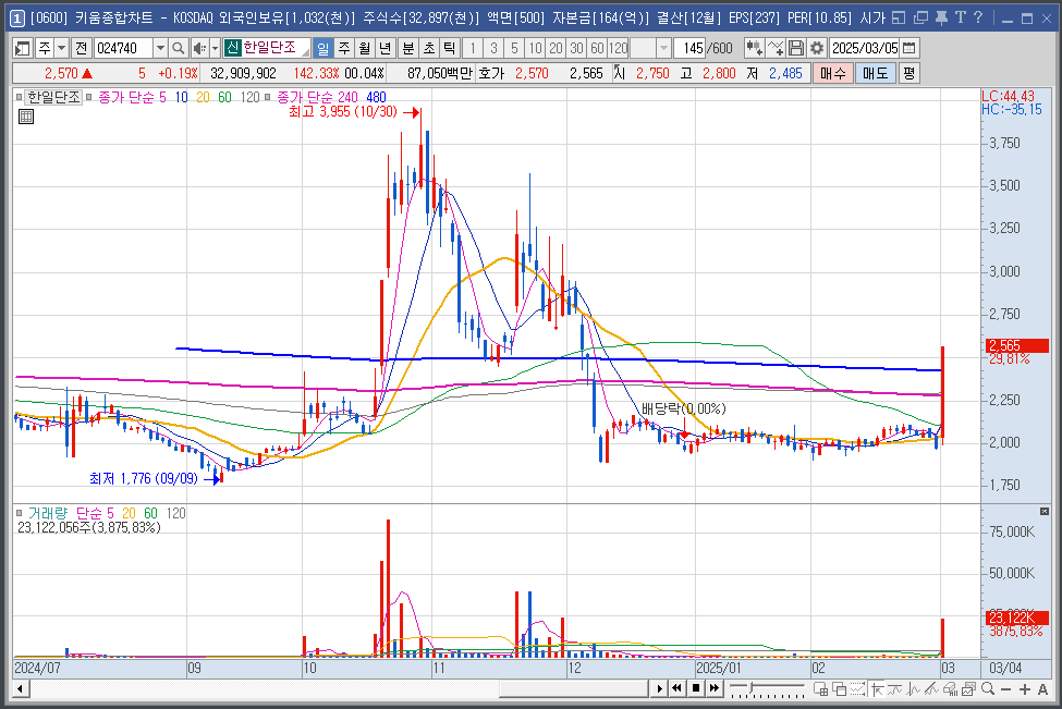 2025년 3월 4일, 한국 증시 전반적인 상승 흐름 속에서 한일단조의 주가도 함께 급등했습니다.